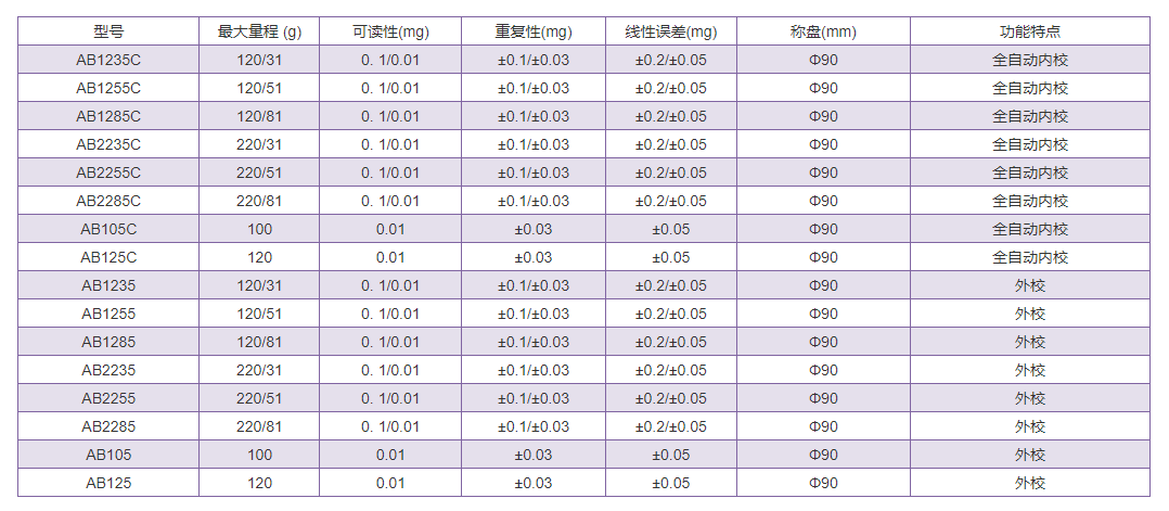 內(nèi)部砝碼校準(zhǔn)(AB-C系列)